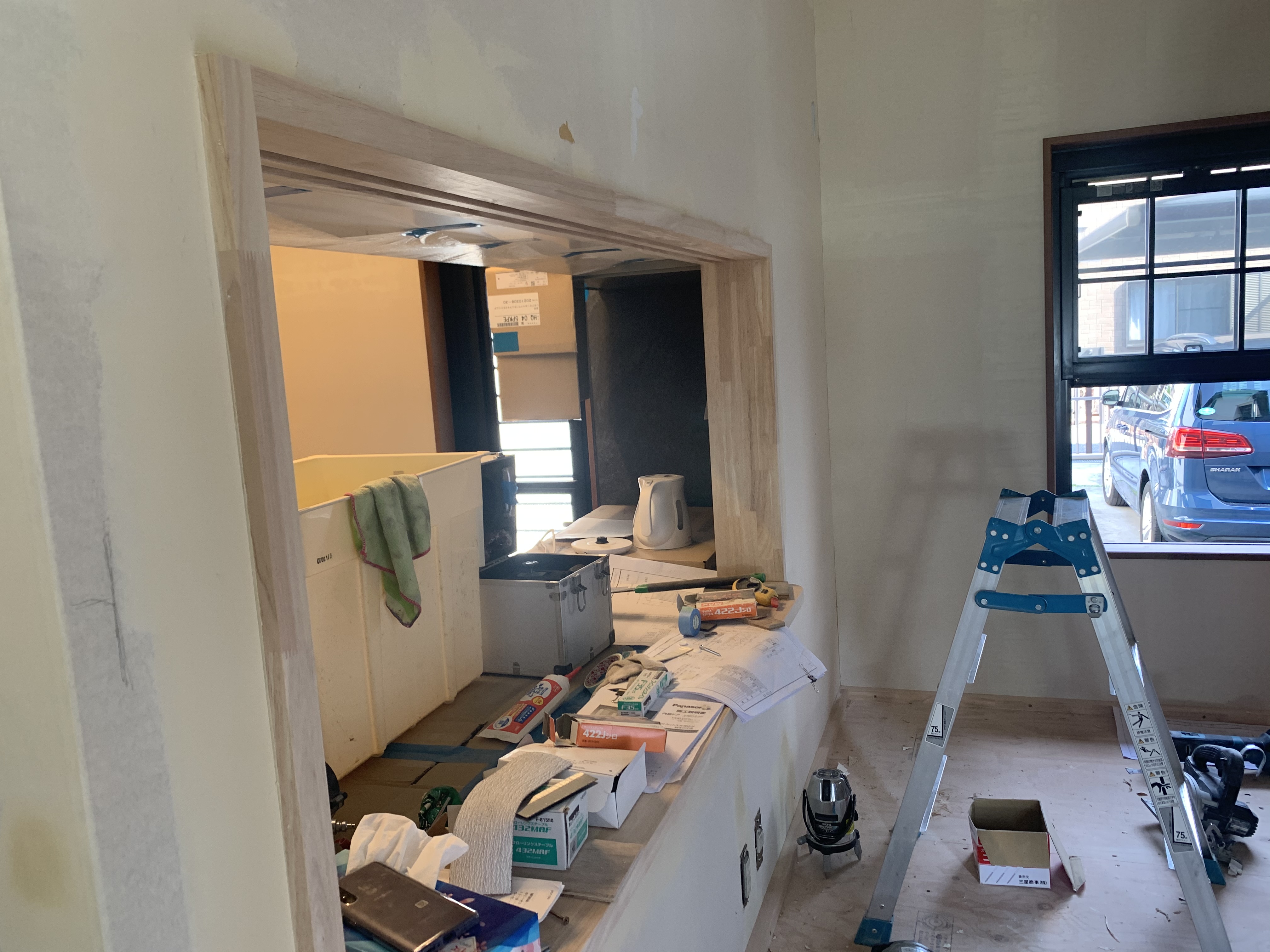 キッチンと和室の間にはオシャレな子窓口が出来ており、完成が楽しみです😆