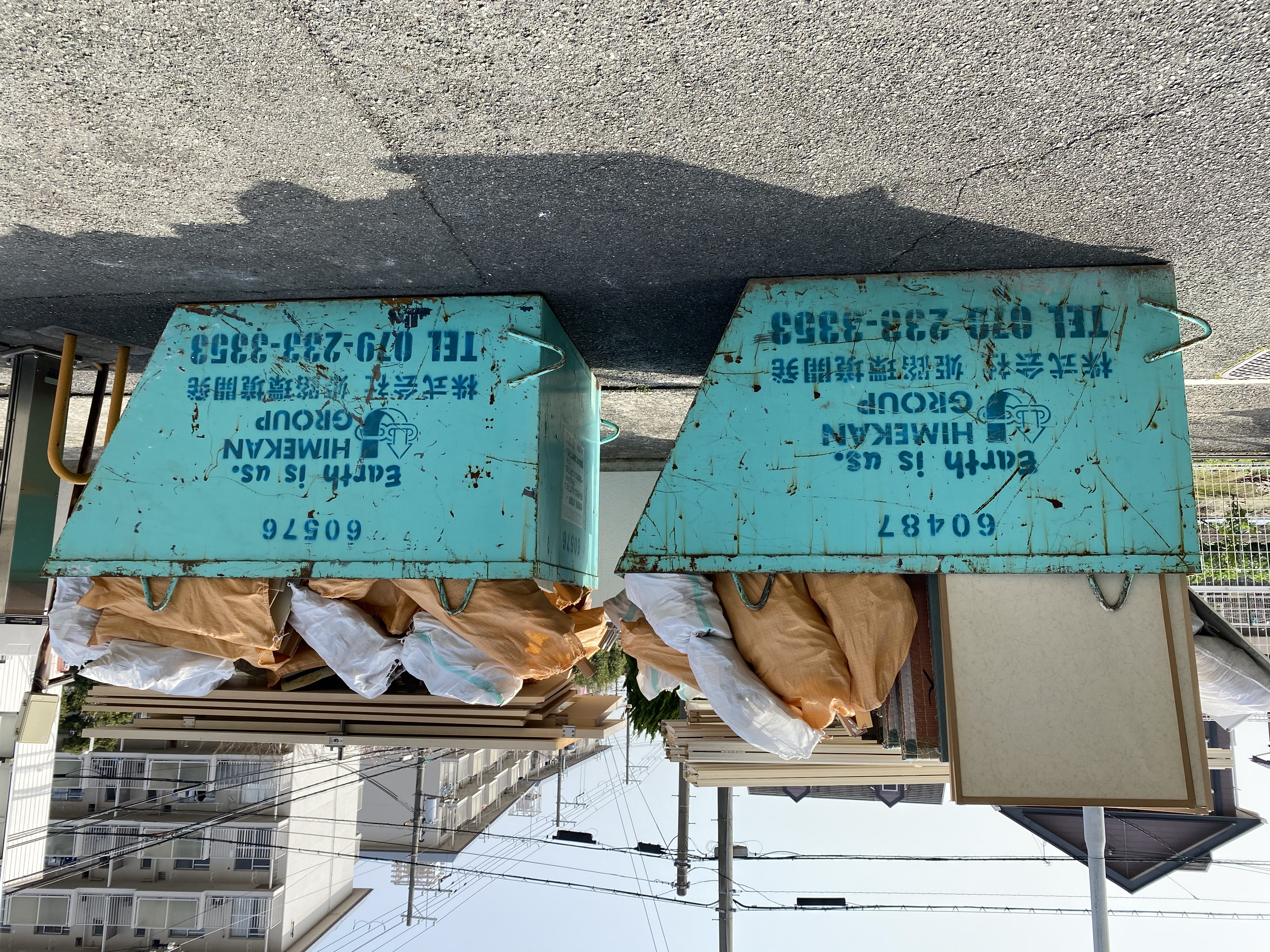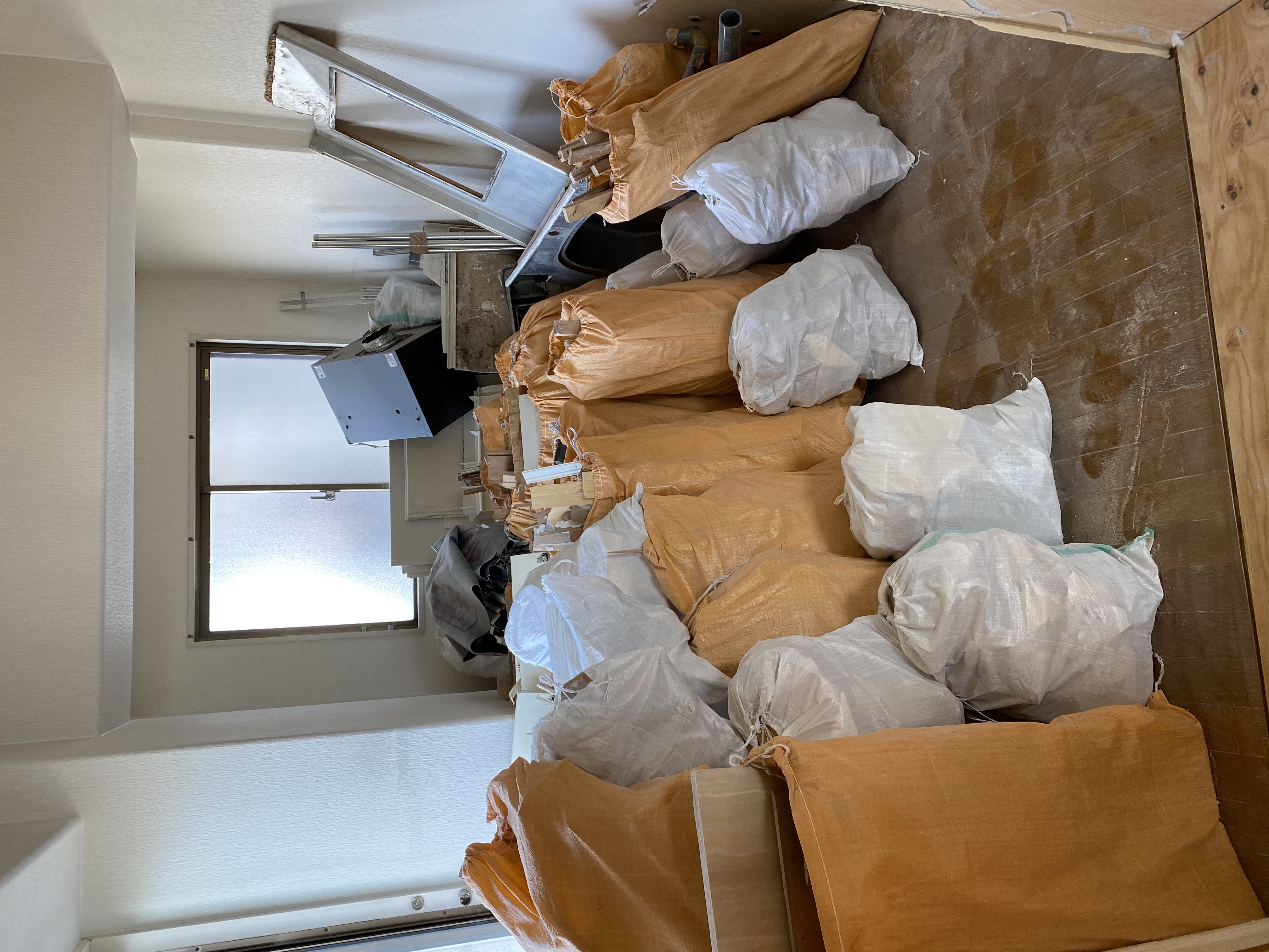 こちら本日、解体して出たゴミをまとめて捨てる日でした。大工さんと監督見習い日記を書いているYuriさんと3人で部屋からマンションのゴミステーションに運ぶ作業、ゴミステーションに置いたゴミをバッカンに詰め込む作業、肉体労働でした。