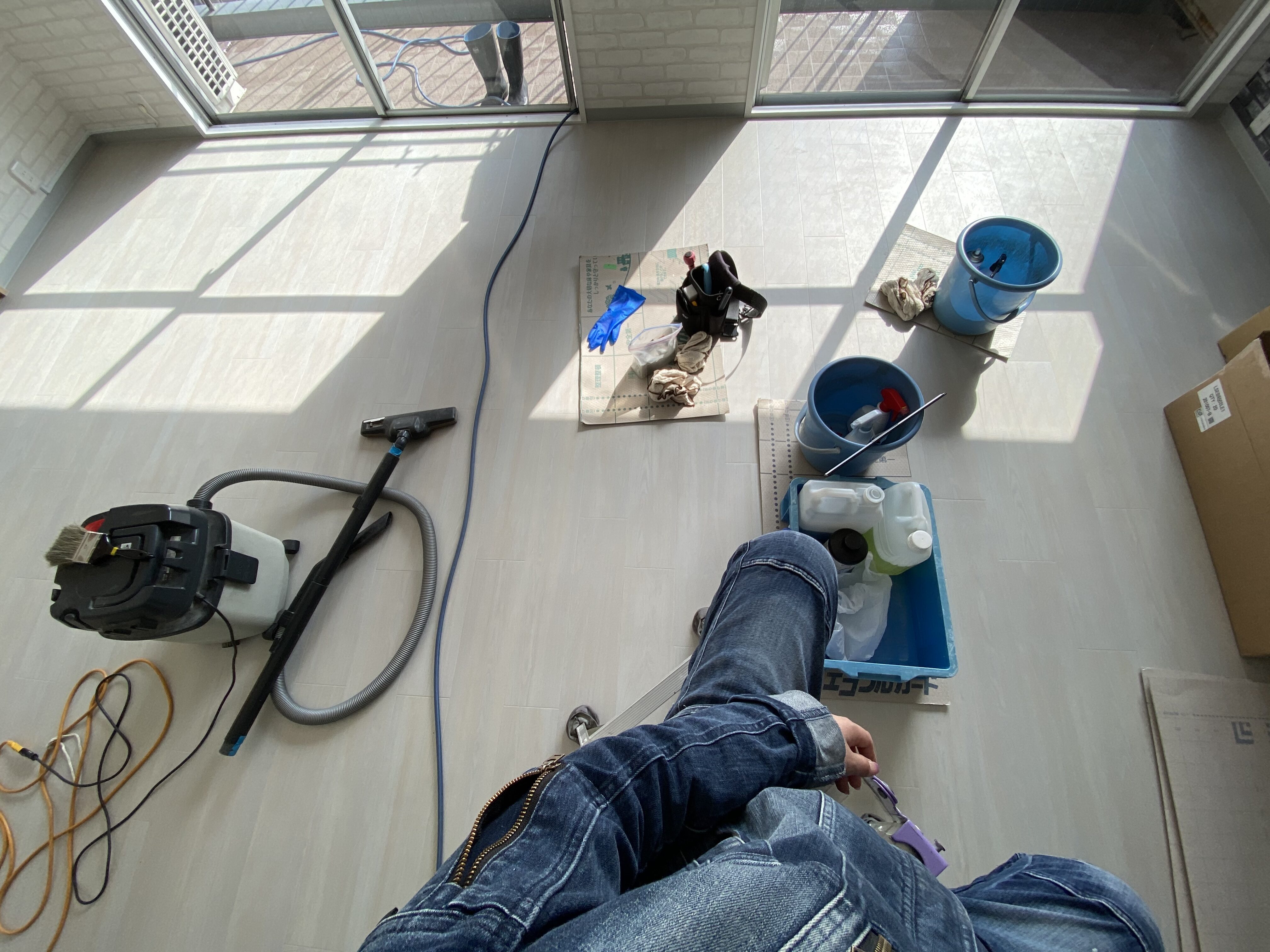 ハウスクリーニングスタートで、お客様と最終確認でした。本日より裸足で部屋に入れるようになります🙆♀️残り2日の工事期間、最後まで責任持って監理させていただきます。