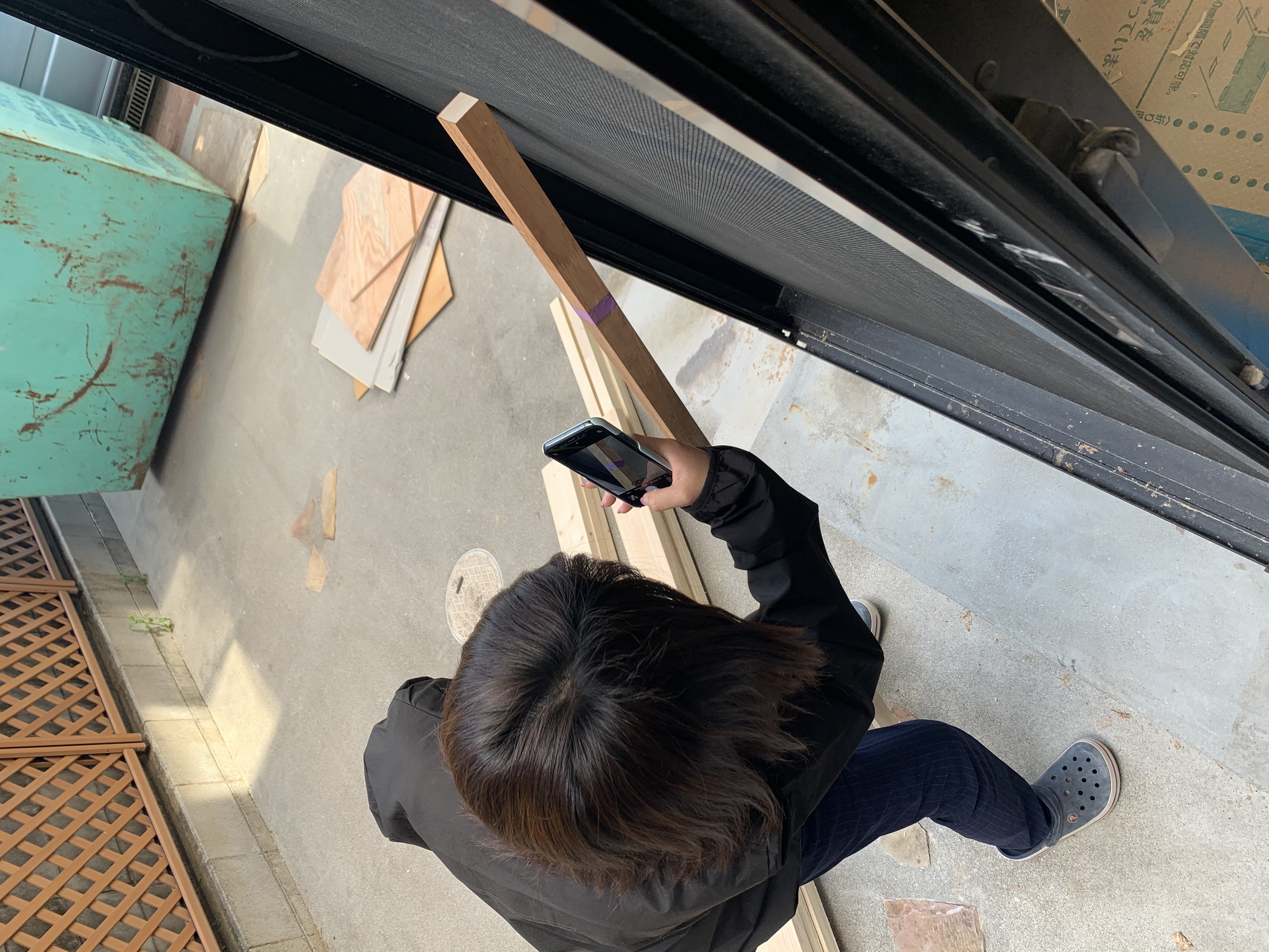 大工さんも立ち合いの元、部屋のイメージとマッチする色を選んびました!素材や光の加減から見える色は異なるので、そこが少し難しいポイントです!