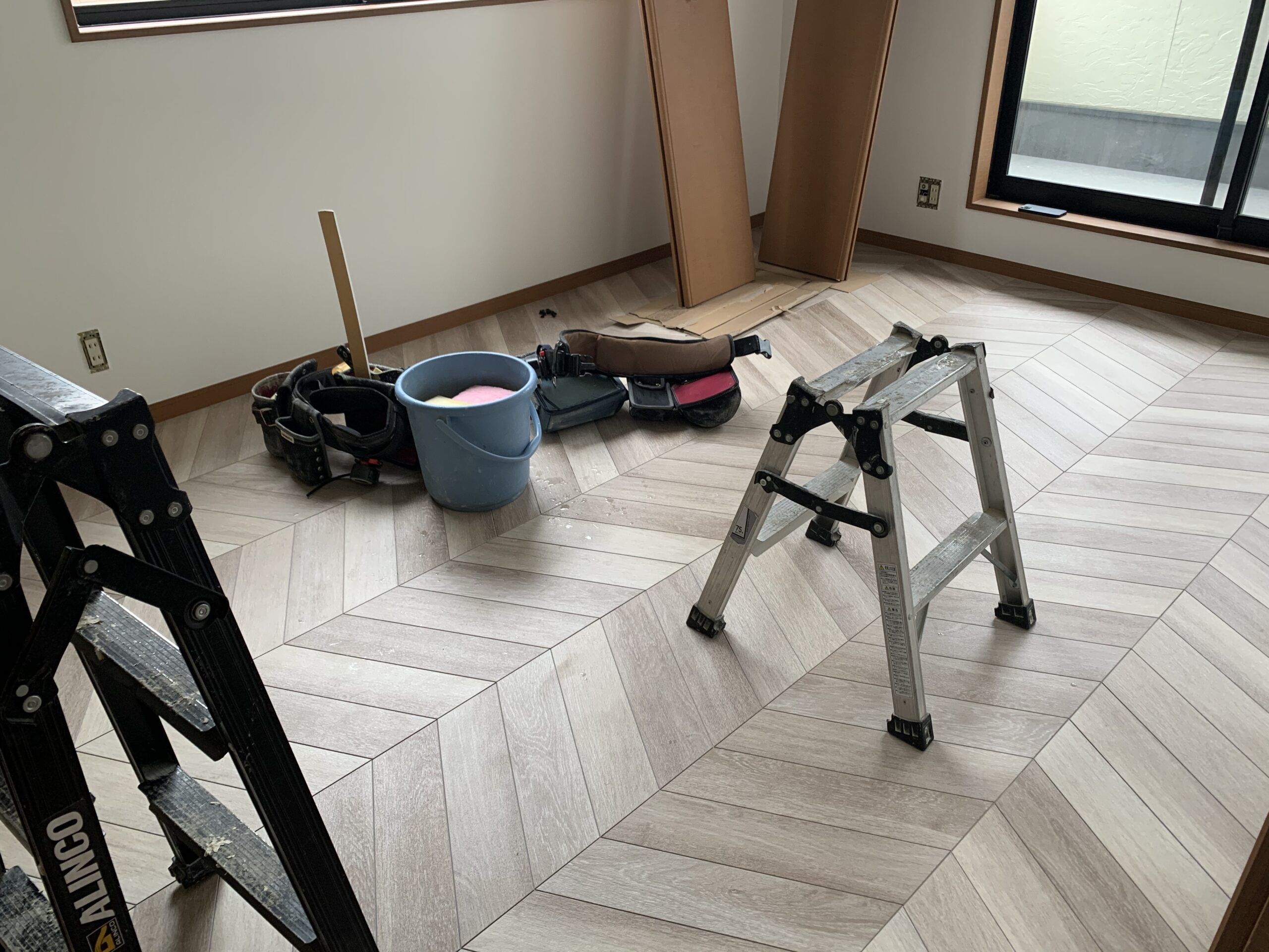 2階の床材なども工事中で、徐々に完成に近づいております!