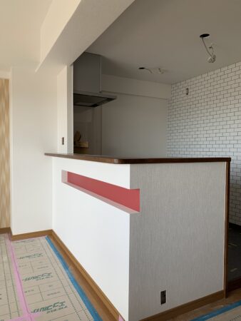 F様、どーしても凹み部分に朱色のクロスを使いたいとご要望あり、カタログでは納得のいく色が無かった為、クロス屋さんに朱色のクロスサンプル依頼して、選びました。綺麗なカラーでとっても素敵です✨🤗✨