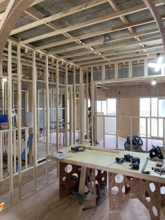 スケルトン状態から骨組みが出来てきました😊こうやって、少しずつカタチになっていく経過を見ながら、大工さん職人さん達すごいなぁって、ワクワクしながら思います。