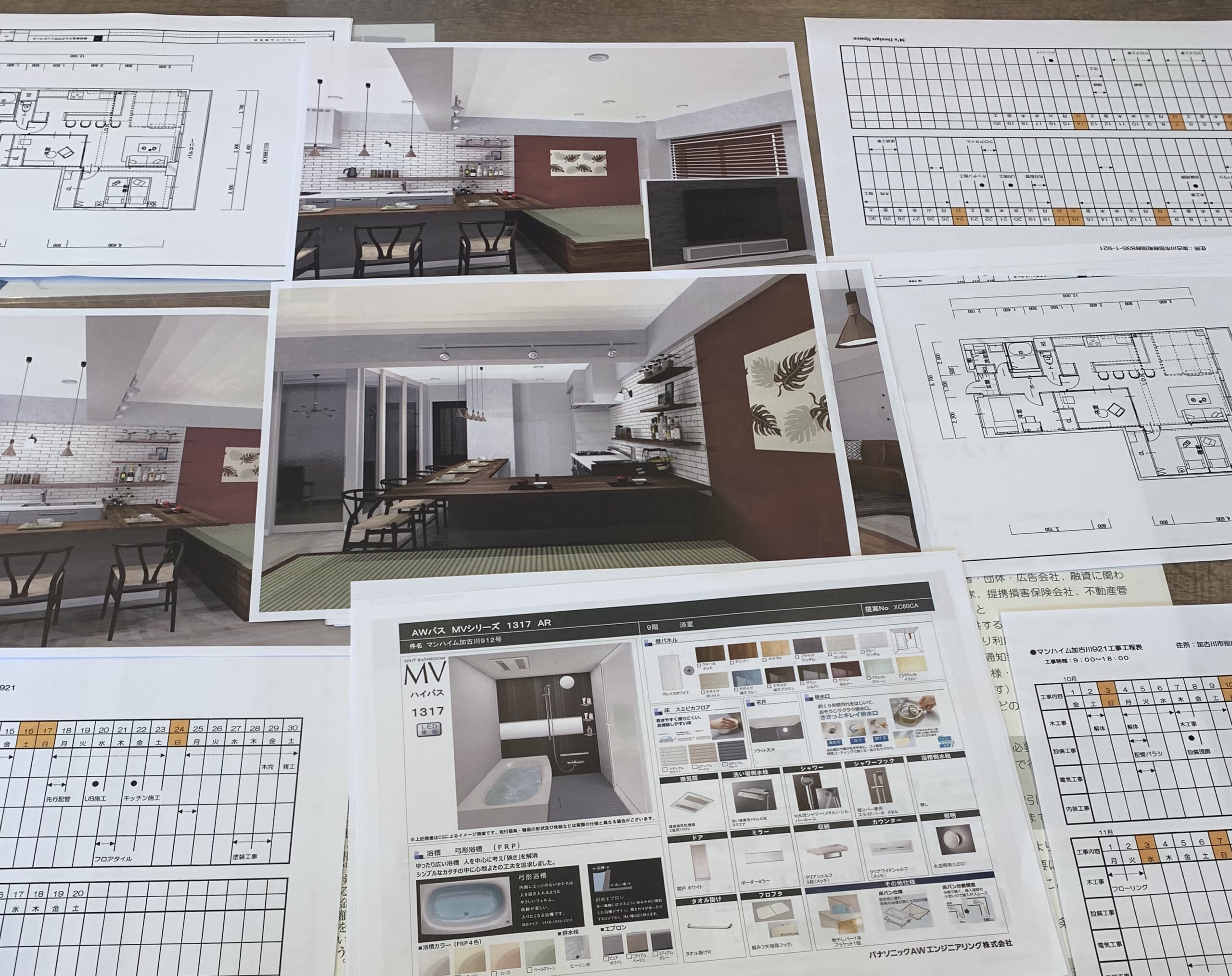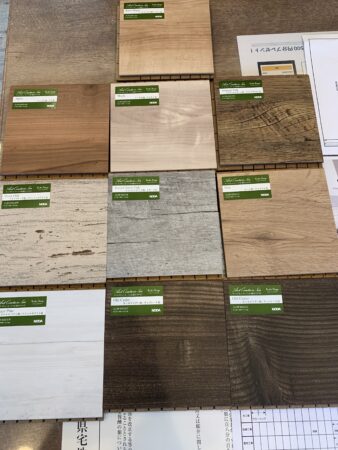 前回の打合せで間取り変更し、本日の打合せは、いつもお世話になってる業者さんがプランを持ってきてくださり、そこからどのタイプのキッチンにするかフロアタイルや建具のカラー等、ここはどうしようか、細かいところを決めていきました。