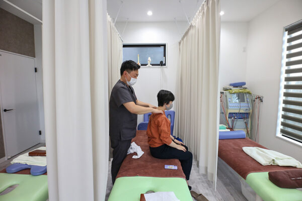 肩こりの施術を受けます…