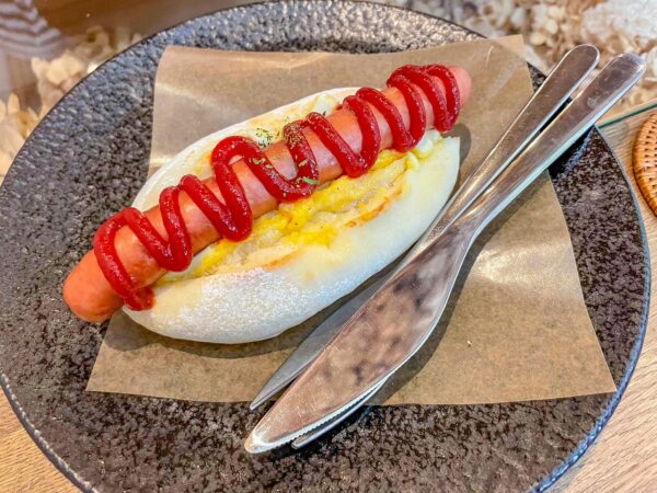 今回はランチということで米粉のパンを使用したホワイトドックを頂きました。