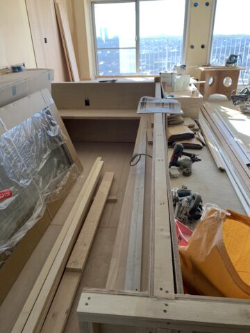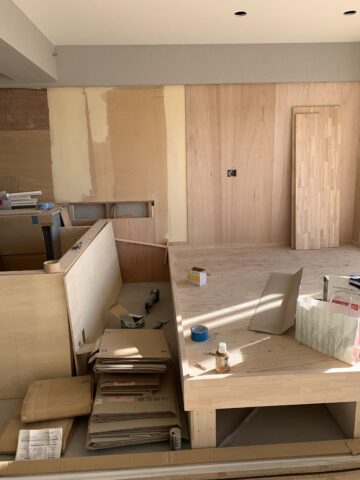 今回キッチンは壁付け、ダイニングテーブルは特注で