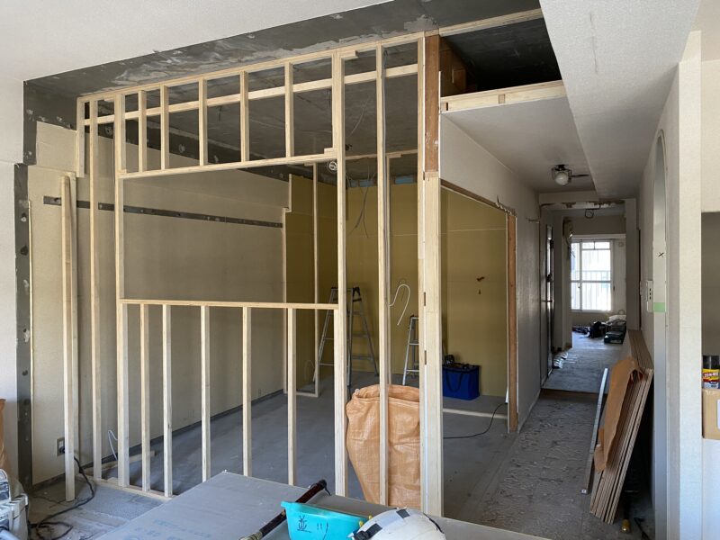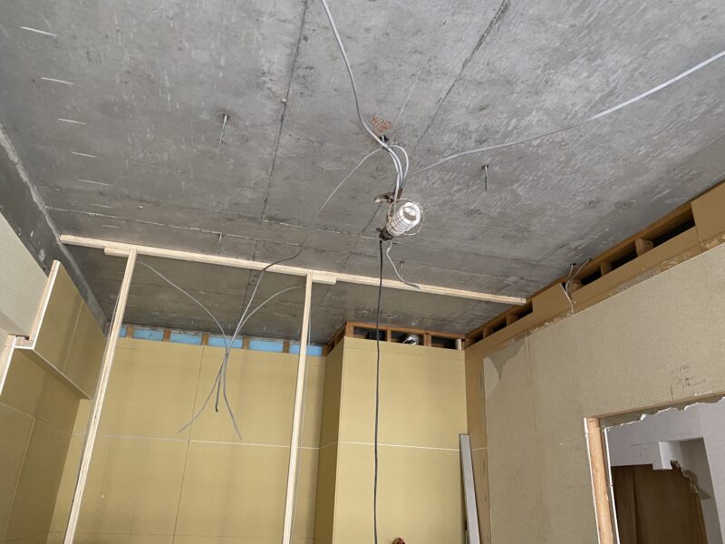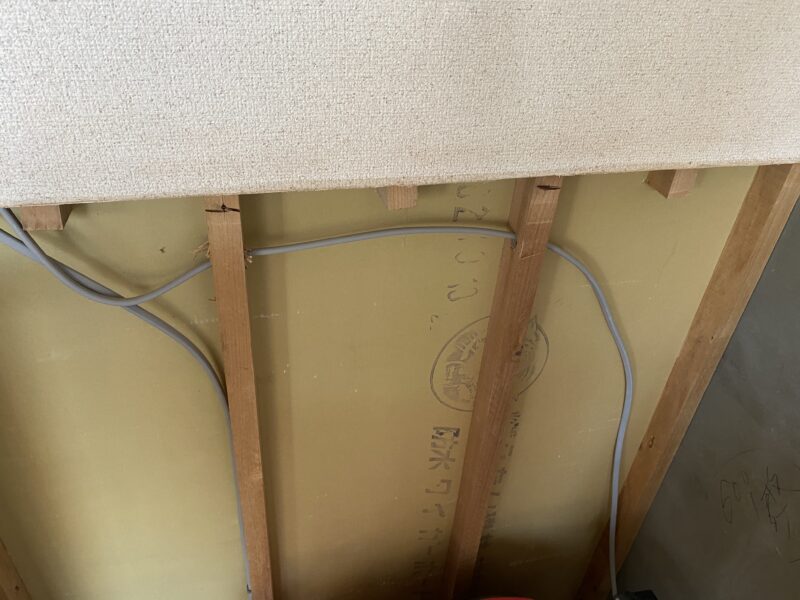 こちらと上記の現場の電気屋さんが同じでこちらも本日電気の配線工事を行っていただきました。先行して行う電気配線が終わったので明日からは大工さんが天井の作業に取り掛かるとのことでした。