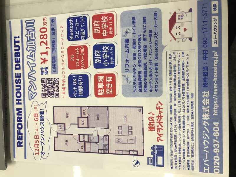 さて初日、12/5(土)6(日)オープンハウス開催予定の物件『マンハイム加古川』を初下見。