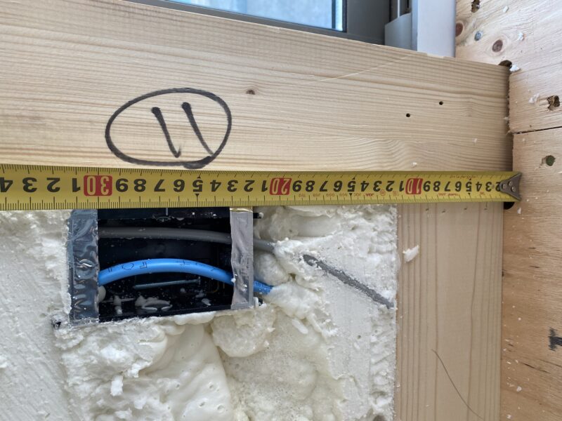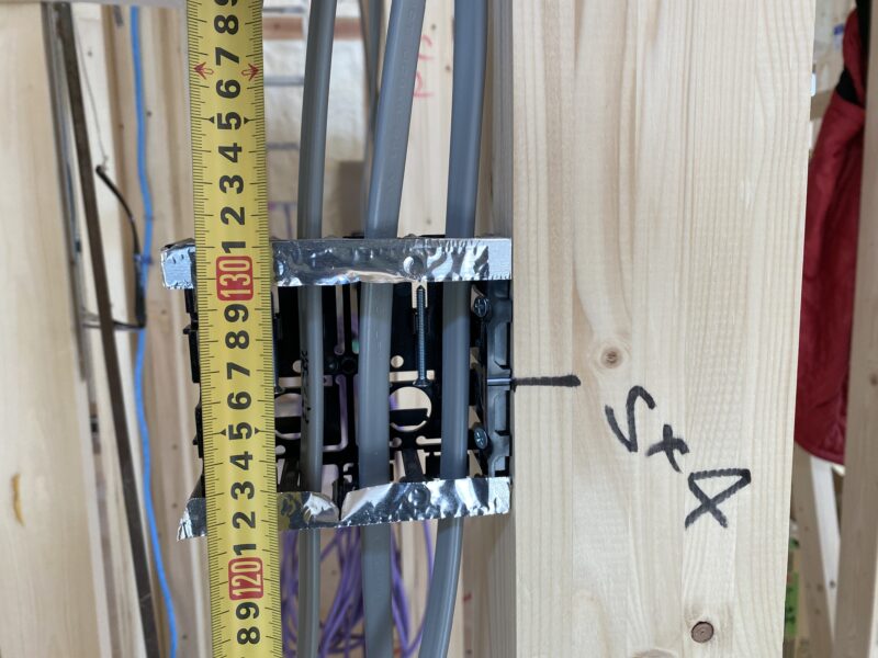 生活に欠かせない電気のスイッチとコンセントの高さのお話。通常の高さのものを下地の段階で撮影できたので撮ってきました!一般的にスイッチは1265mm、コンセントは265mmこのような高さになります。