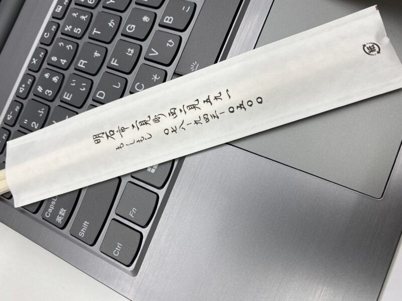 コロナの影響で忘年会が中止となったため、社長から豪華なお弁当をいただきました!お箸が入っている袋の裏に本来『電話』と記載されているところが『もしもし』となっていました。😲←こんな顔になりました(笑)