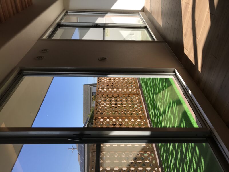 朝、マンハイム加古川に行くと、バルコニーに人工芝と柵が設置されていました👀✨