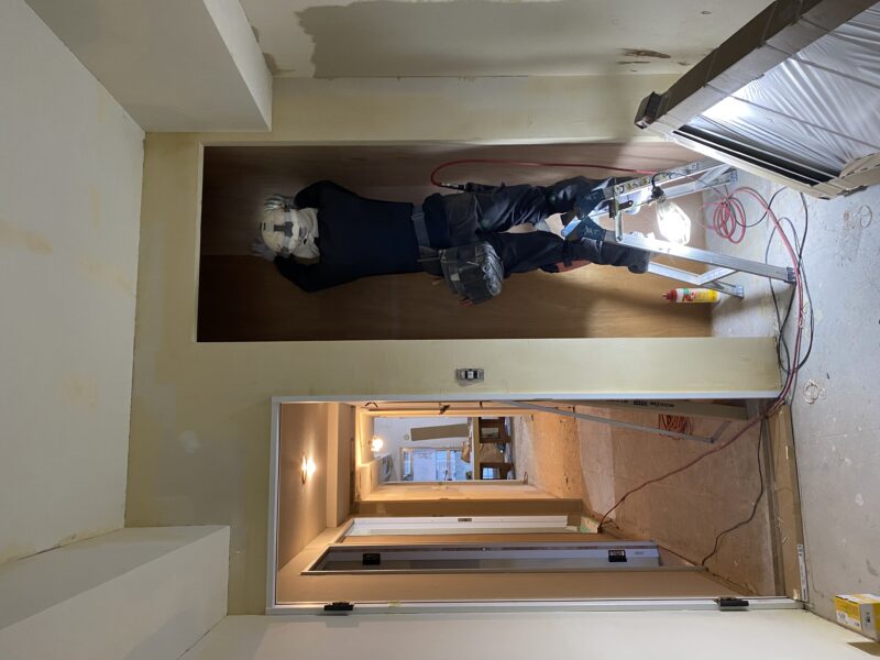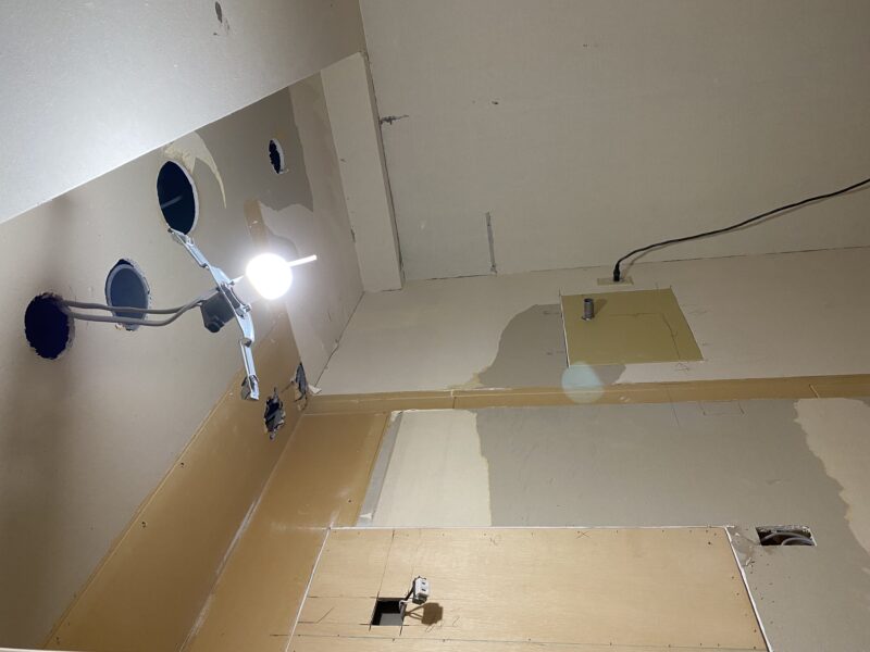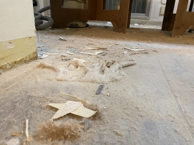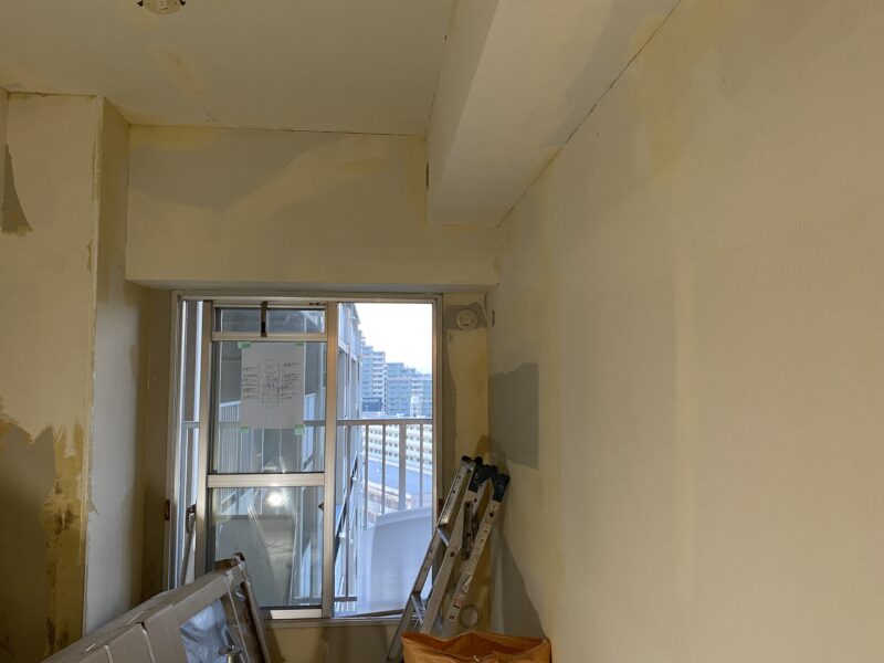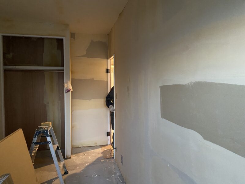 こちらクロス屋さんの作業がスタートしました!クロスを剥がし、つなぎ目をパテというもので埋める作業をしておりました。明日クロスの色決めの打ち合わせです♩大工さんの作業が9割終わり、部屋の形は完成しました。電気屋さんがコンセントの位置がくる箇所の穴あけ作業をしてくださっていました。打ち合わせが重なり、2日ほど現場に行けていなかっただけでかなり進んでおりました。現場へ行くとクロス職人の方に『大工さん!噂してたら藤原さんきたで!!!』と第一声。なんのこっちゃ分からなくて話を聞くと二日に一回、行けるときは毎日行っていたのに連続して行けていなかったので普段三日に一回は来とったのに!と話してたみたいで…お疲れ様です!と行くと、おぉ!寂しかったんや~と。三回ほど言われました😅なんだか少しほっこりした夕方の現場でした。明日は添付してます、コンクリートの床に張り付いている綿のようなものを剥がす作業をしてきます。