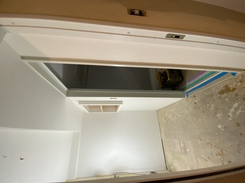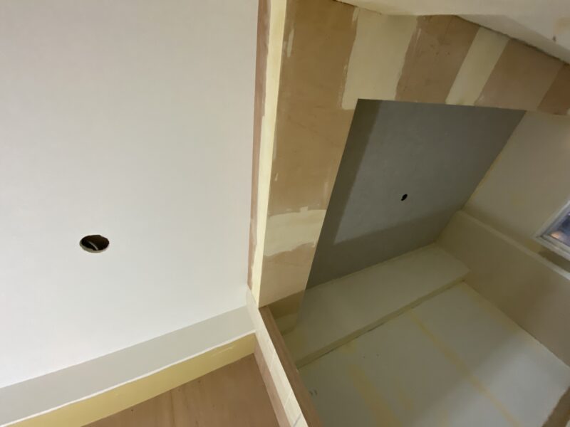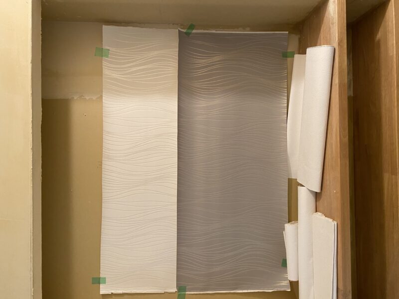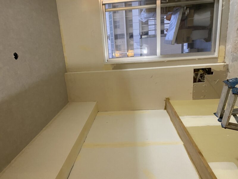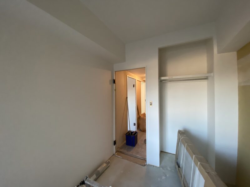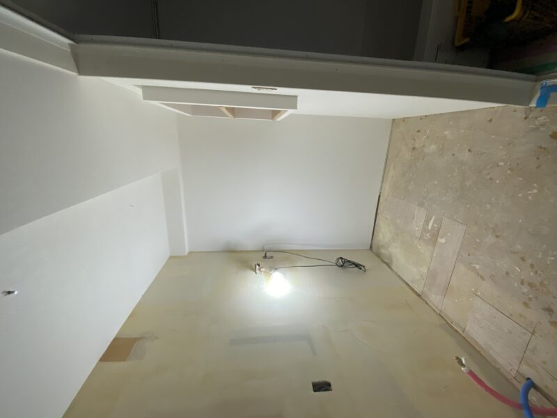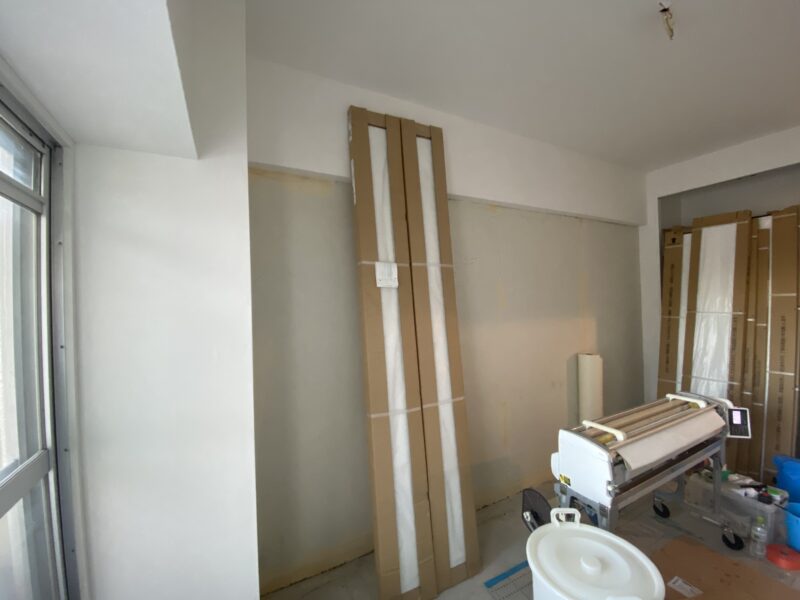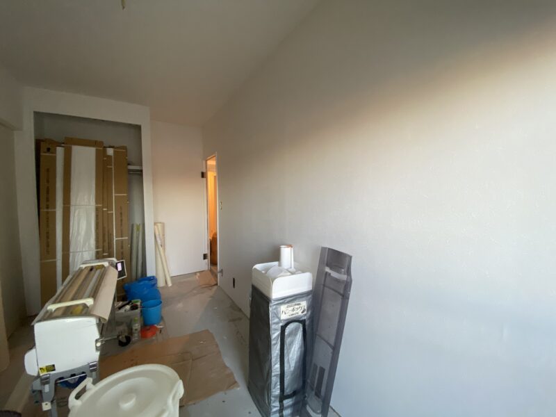 クロス工事本格的にスタートしておりもうベースの白いクロスがほとんど貼ってありました!何ならわたしが宿題で持ち帰っていたアクセントクロスの決定待ちでお待たせさせてしまっている状態でした😅素材、色の組み合わせ、目地の目立ちやすさなど相談し、決めてきました!!!わたしがずっと使用したいと思っていたクロスを実際大きめにカットして現場に持ってきてくださっていて実物見るとそれはそれはもうテンション上がって廊下に設ける棚のアクセントとして貼ることになりました。部屋の雰囲気にも合っており早く仕上がりが見たいです♩今回、LDKの天井クロスをアクセントにしております!随時写真アップしていきますのでお楽しみに!キッチンカウンターの色をクロスに合わせて急遽変更しカジュアルな木目調に変身しました。