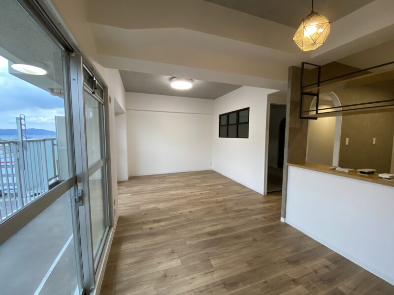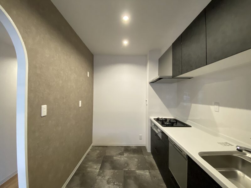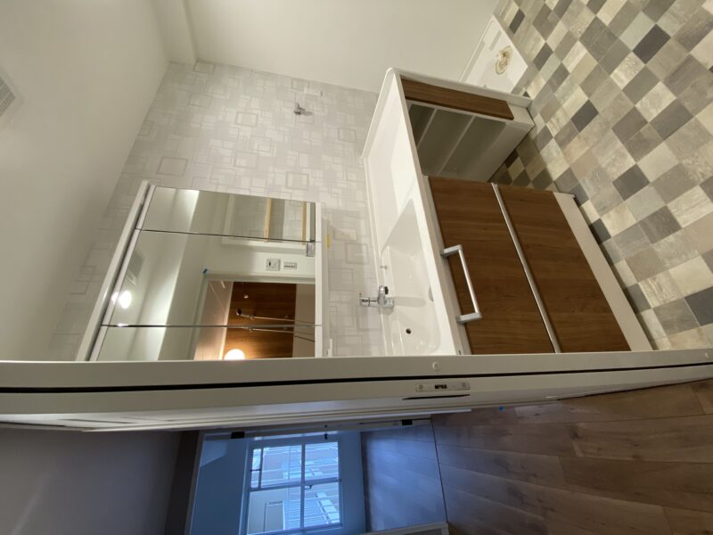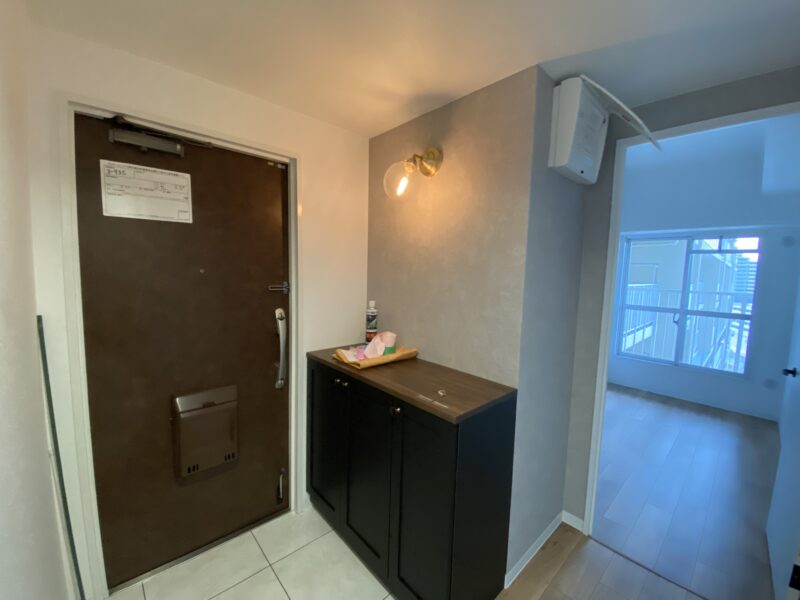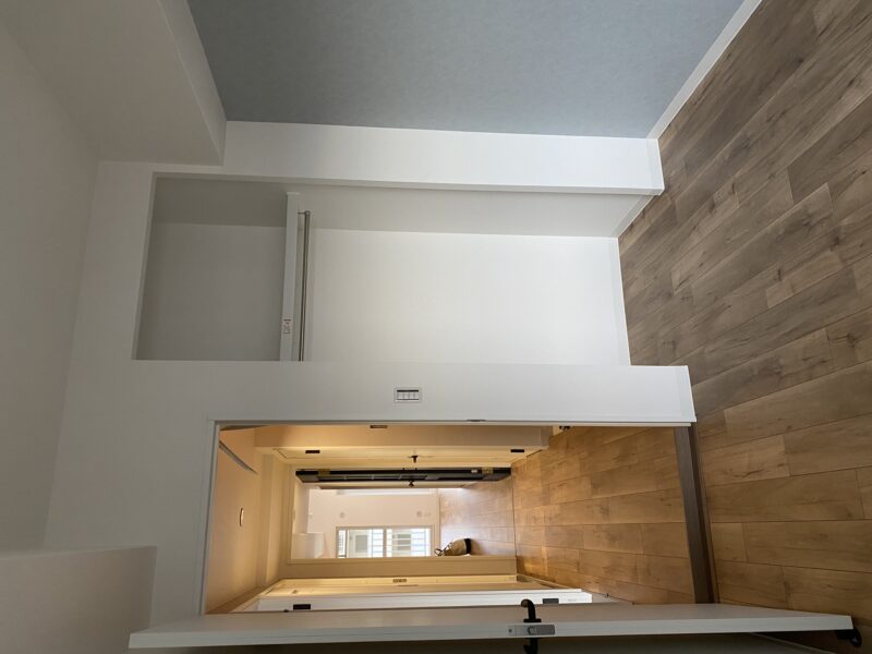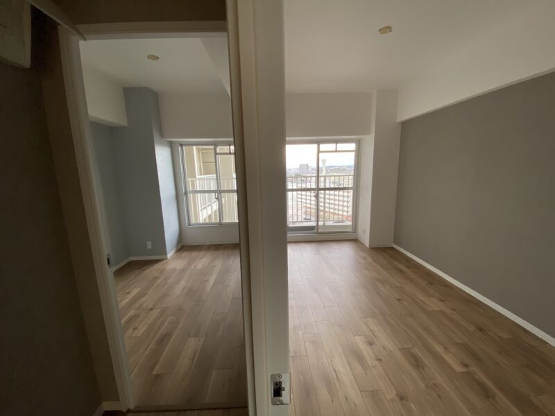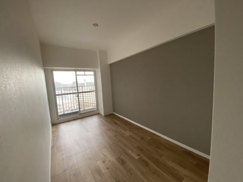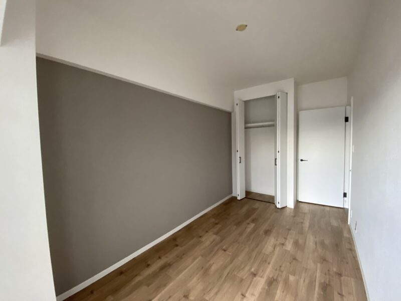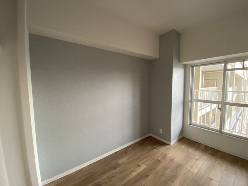 洋室は淡い水色とおしゃれなブラウンのアクセントクロスにしました。水色のクロス初の試みでしたが予想以上に綺麗でした✨