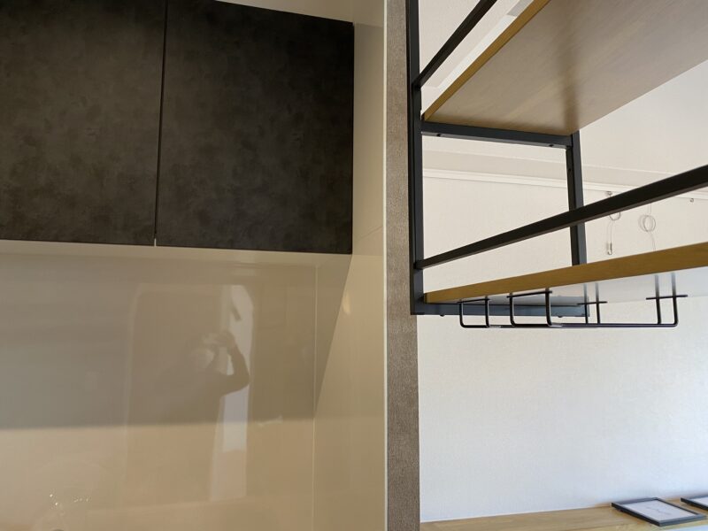 本日、事務所の清掃でしたので事務所三階の応接間で事務作業していました。普段と違う環境での作業とてもはかどりました。そして明石市のファミールハイツのキッチンカウンター上の棚にワイングラスをかけられるよう、グラスハンガーを設置してきました。