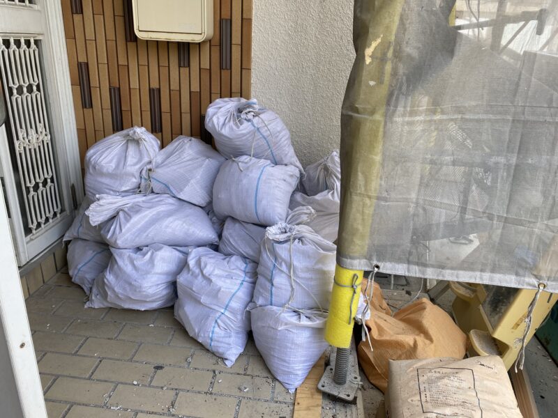 今日は新しくお風呂を生まれ変わらすため、ある作業をしました。高さ調節するための左官工事です。現場に行ったときはその前段階のガラを片づける作業でした。大工さんがひたすら土のう袋にガラを入れて私がその土のう袋を玄関先まで運ぶ。これを土のう袋およそ20袋ほど(1袋20キロくらいかな)いい筋トレになりました。