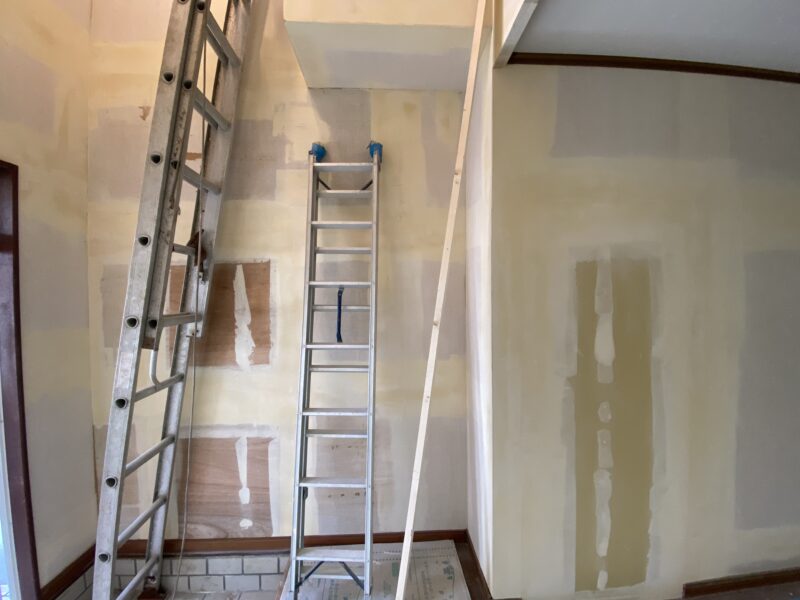 イレギュラーで大工さんとクロス屋さん同時進行中です。この2業者が入っていることによって現場の進捗が一気に進んでいる気がします。今日行くと、以前ドアがあり開口だった部分がボードにより塞がれておりました。