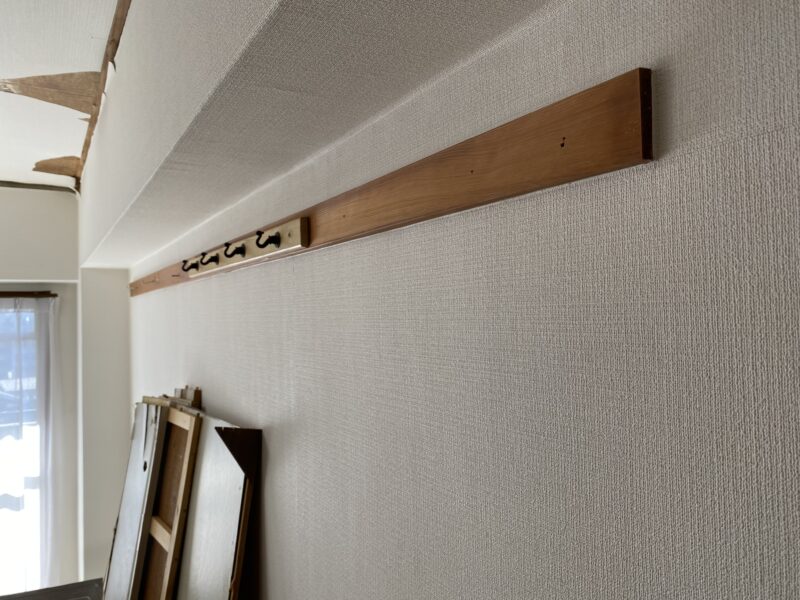 みなさま、こちら和室にある洋服などハンガーをかけることができるモノなんですが名前をご存知ですか??『つけ長押(つけなげし)』と言うみたいです🤓マンションだとこれが躯体のコンクリートにひっつけてあるのです。わたしもリフォーム工事の監督し始めて初めて知りました!今回の物件ではここにゆくゆく壁掛けのテレビをする予定のようなので配線工事が必要で配線を隠す、壁掛けするための壁を作成ということでつけ長押は隠れてしまいます。あれば便利!使う!!!そんなところかと。