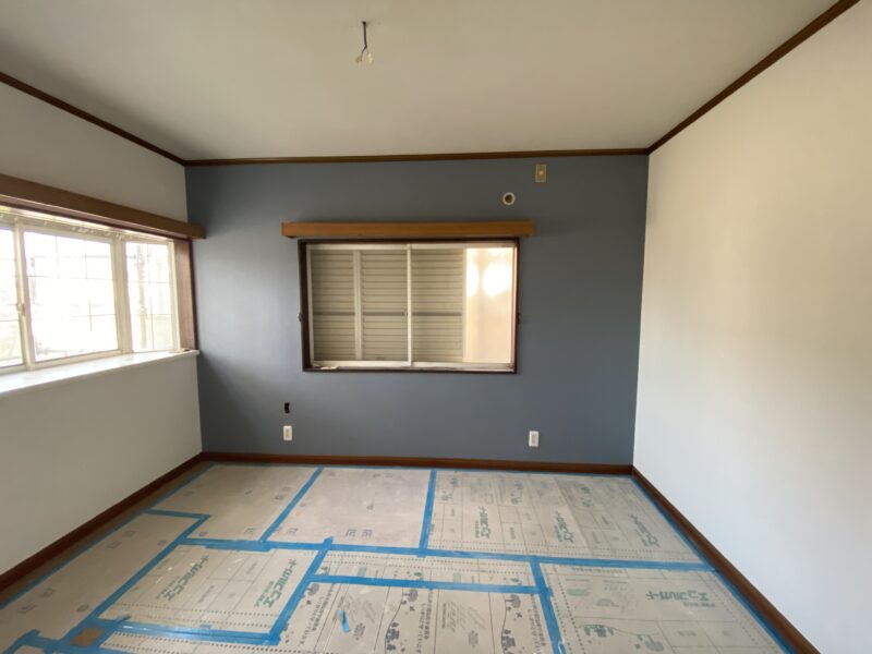 壁、天井のクロス作業完了しておりました。2Fの洋室2部屋のアクセントクロスとてもいい感じでした♩ベースは白で統一されており綺麗で清潔感のあるものに仕上がっていました。お客様もご満足の様子でよかったです( ´艸`)外回りの工事も順調に進んでおります。