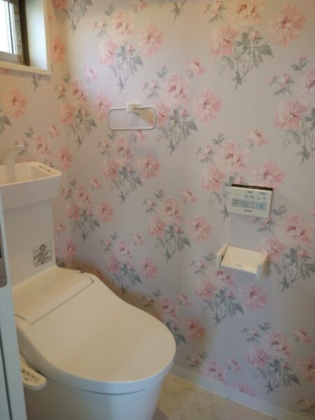 おはようございます!スタッフのHです!先日お引渡しさせていただくお客様のお家の写真撮影に行ってまいりました♪私は個人的にお客様のお手洗いの壁紙を見るのが好きで、今回もそれぞれのお宅で素敵な壁紙を選ばれていて、「かわいい~!素敵~!おしゃれ!」と思って、パチリ📷撮らせて頂きました。トイレに行くのが楽しみになる素敵な空間になっています♪
