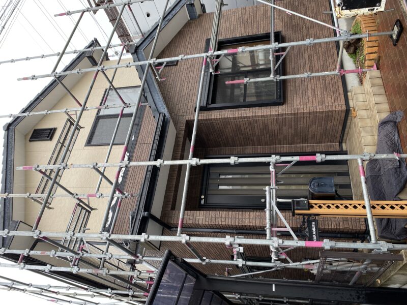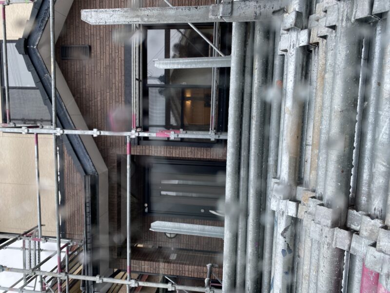 本日足場組立でした!!!土砂降りの雨の中足場の職人さんが頑張って作業しておられました。外壁と屋根作業。ガラッと変わり、内装のクロスもいつもと違ったテイストですのでお楽しみに🐻