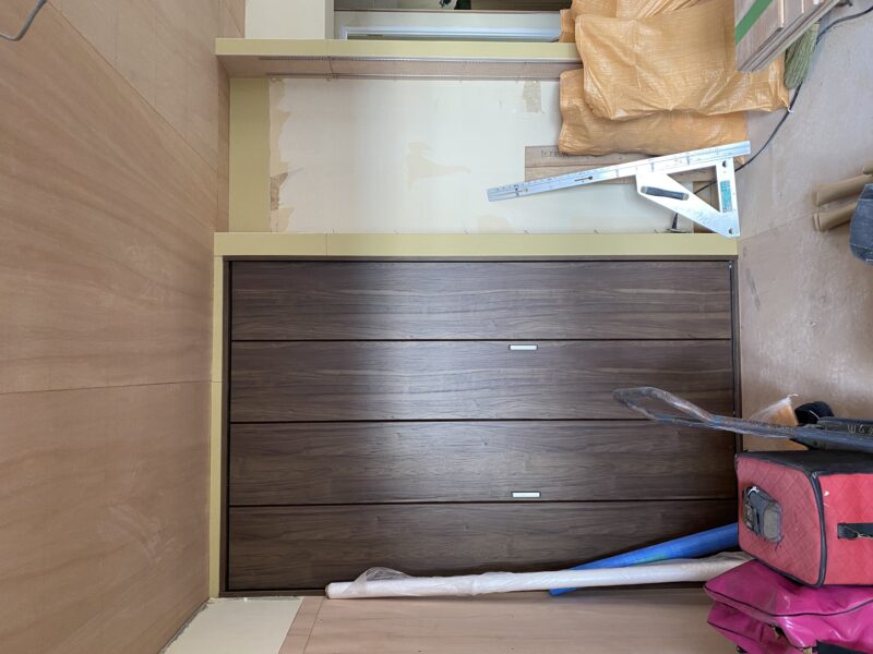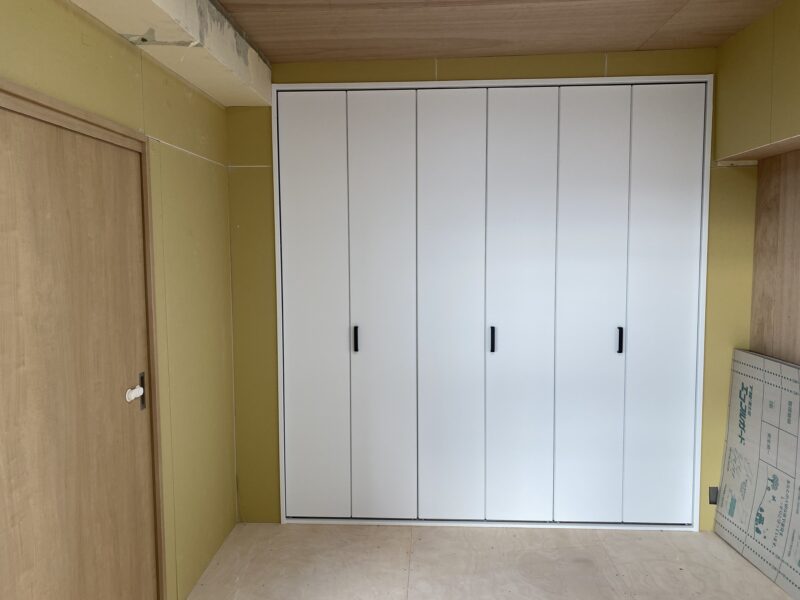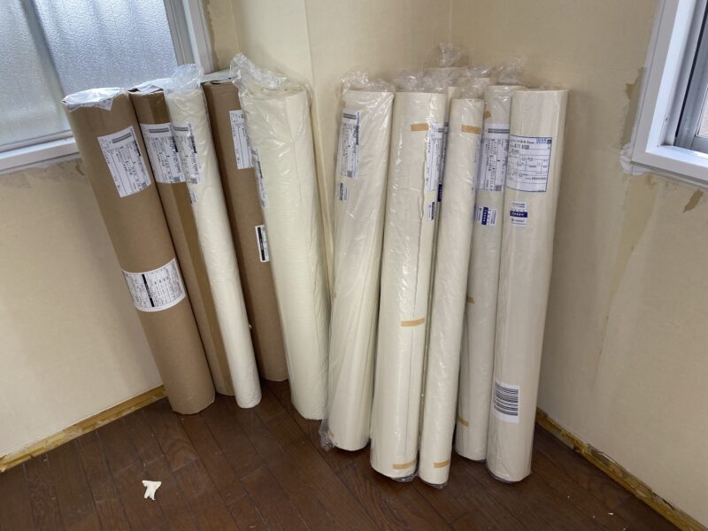 昨日、木部部分の塗装工事でした。以前は昔ながらの茶色の窓枠でしたが今回はお客様希望で白で統一しました。一気に部屋が明るくなったかと思います。月曜から本格的にクロスを貼る工事開始です。もう既に大量のクロスが置いてありました!背の高い大きなクローゼット。パンチのある、存在感のある扉。クロスを貼ってどうなるかほんとに楽しみです♩