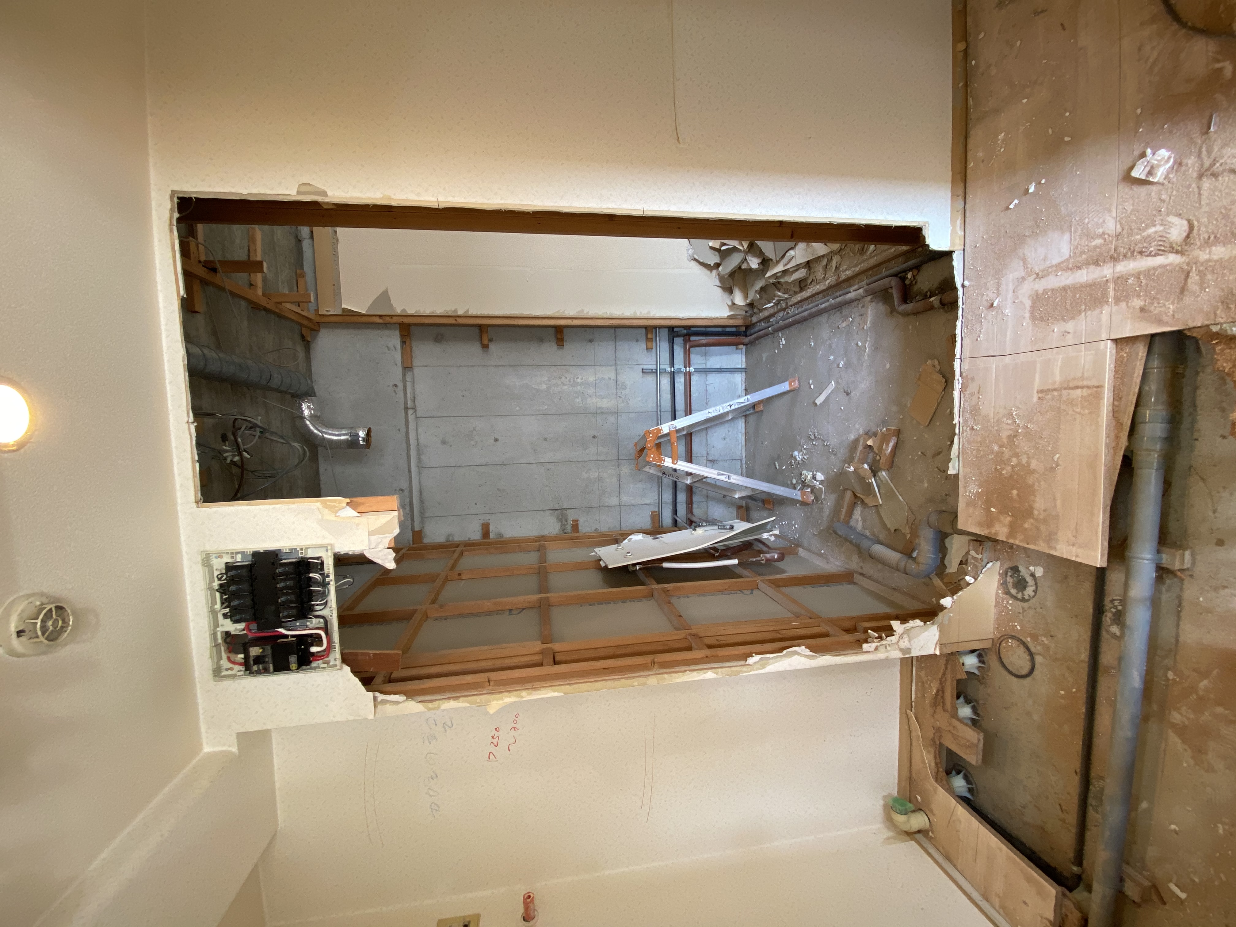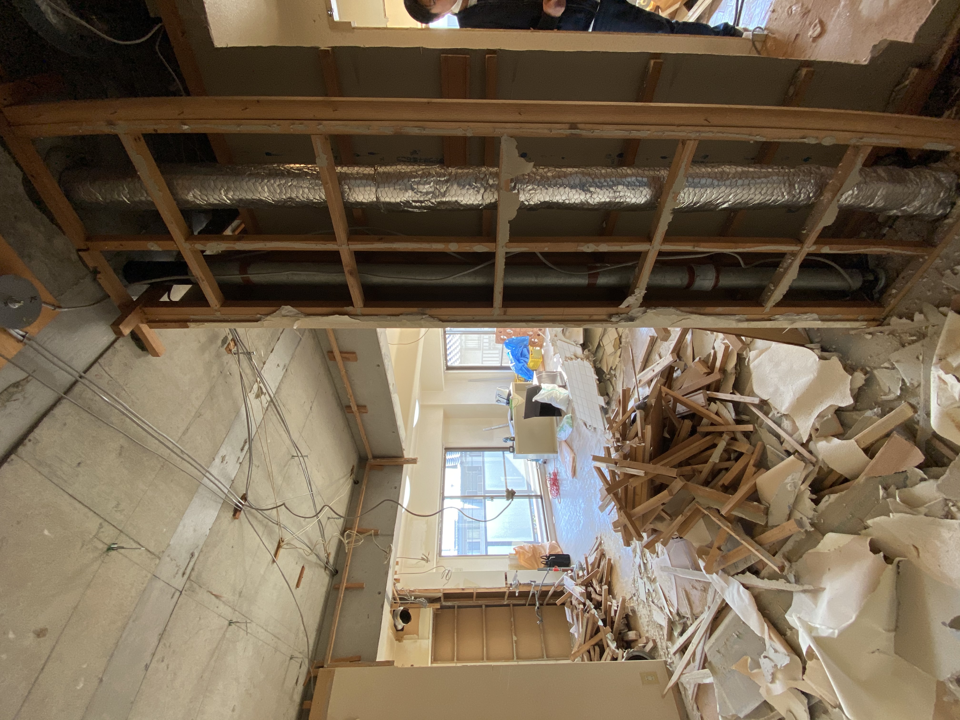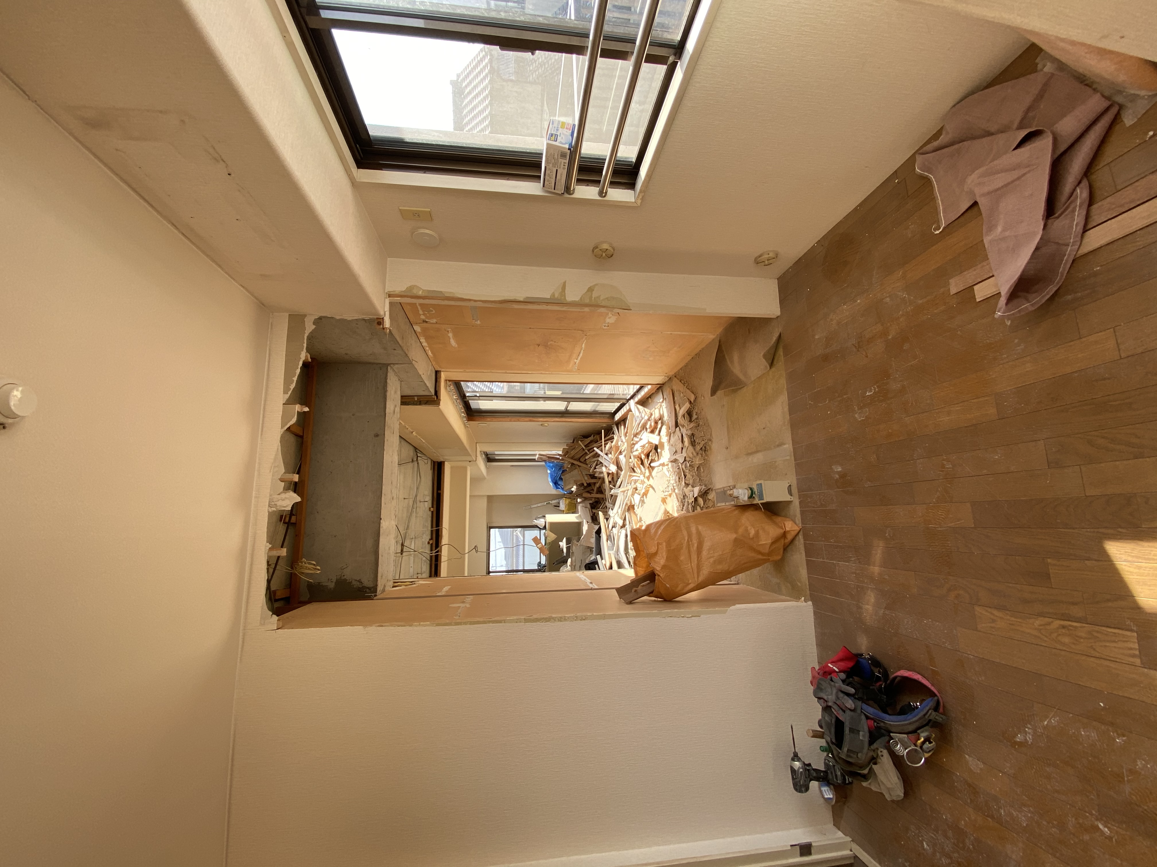 解体2日目。色んな部屋が貫通しており、大変身していました。見えなかった部屋が解体したことによって貫通して2部屋が繋がったような感じでした。