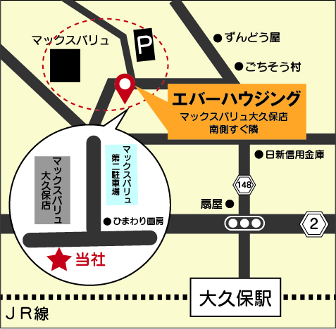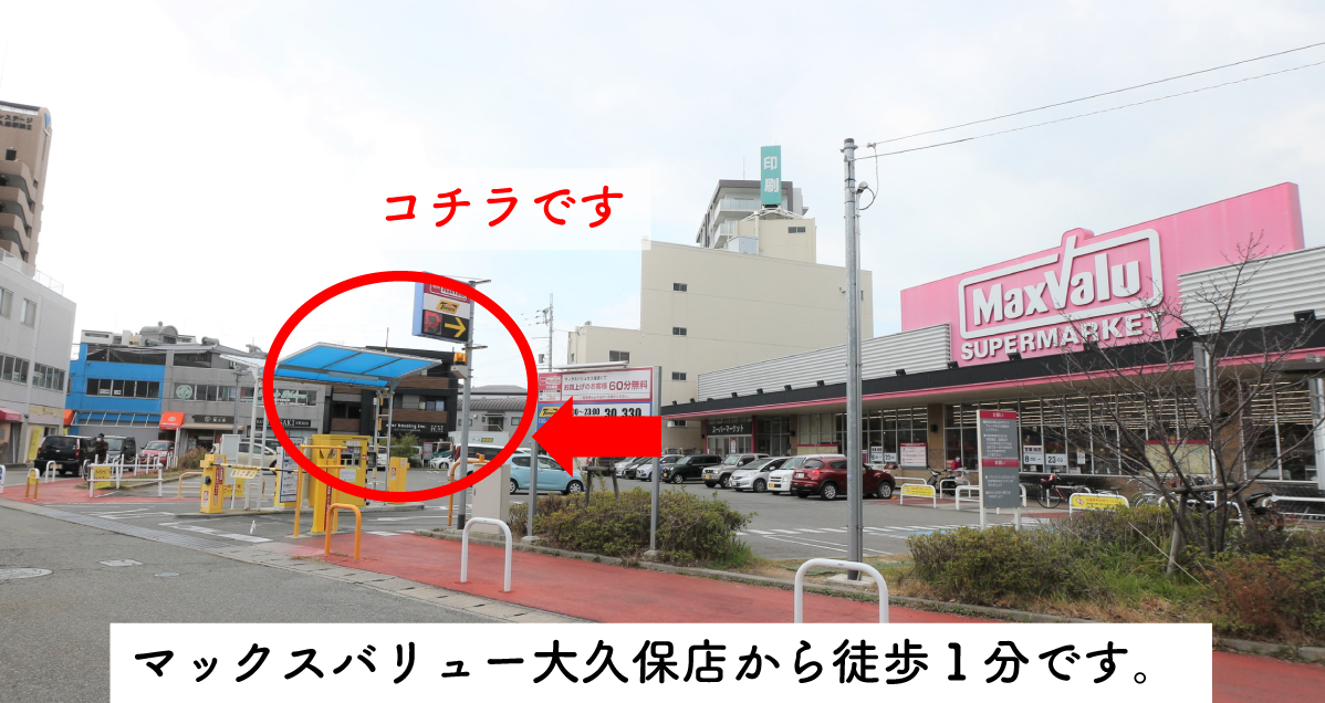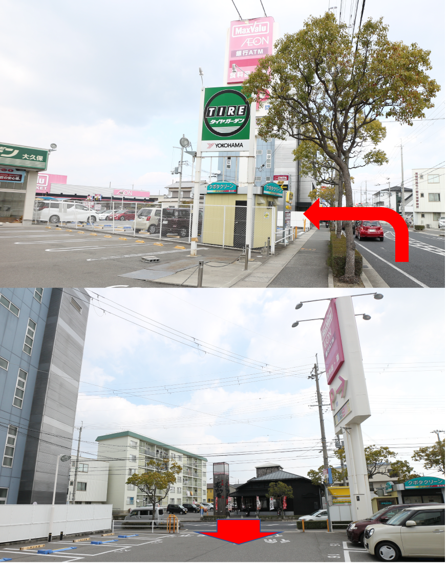 駐車場は「マックスバリュ大久保店第2」が提携駐車場です。マックスバリュ大久保店から入って左手の駐車場です。提携駐車場をご利用のお客様には駐車サービス券を発行させていただきますので、スタッフにお申し付けください。