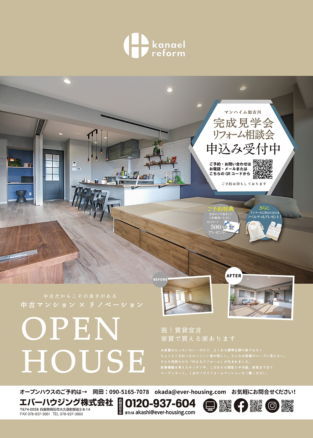 エバーハウジングでは、明石・西明石・大久保・魚住・二見・加古川・播磨・稲美・神戸の各エリアで、戸建・マンション・土地・不動産情報をお探しの方を対象に、住まいに関する情報をご案内しております。不動産のことはもちろん、リフォーム・リノベーションなど、暮らしに関することなら何なりと当社へご相談・お問い合わせください。