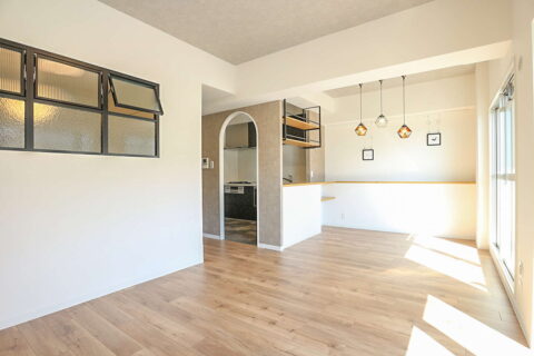 キッチン横が吹き抜けになっていて、そこから子供部屋の室内窓が見えるので…