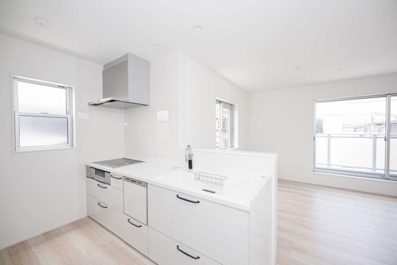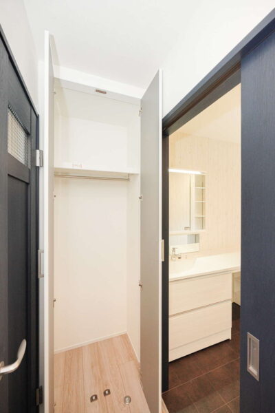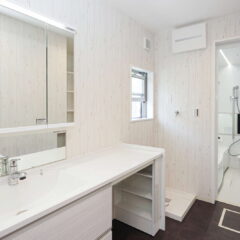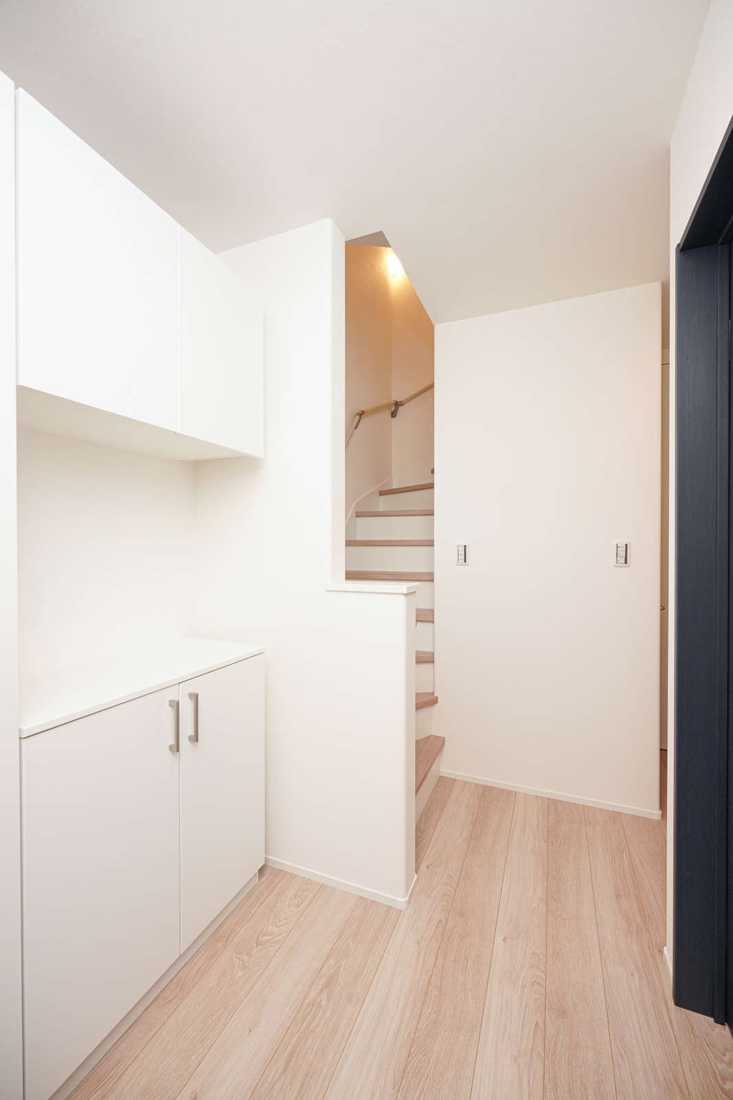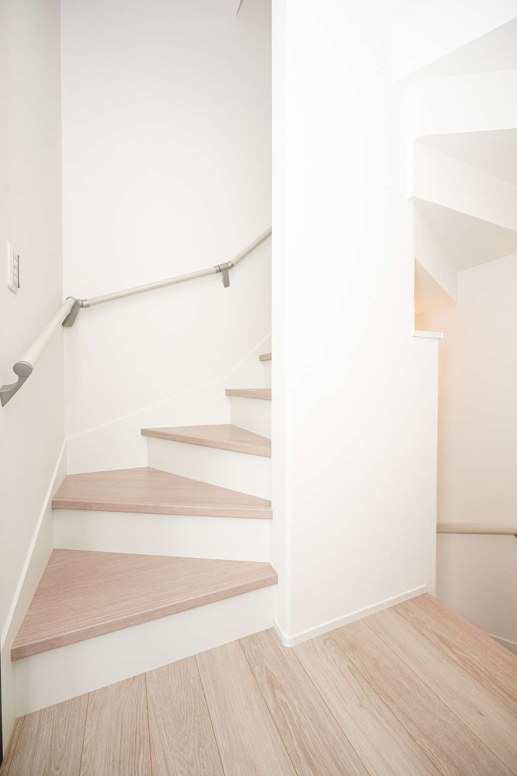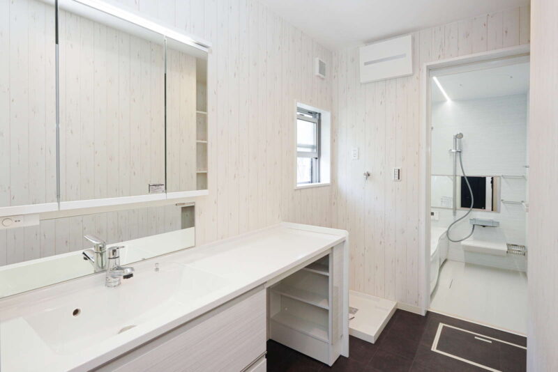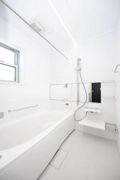 2階リビングで陽当たりを確保しつつ、コンパクトな空間でしっかりとした住空間もあるので、ファミリーでも過ごしやすい3階建てに。暗くなりがちな浴室も天井のライン照明で明るさをアップ。