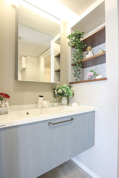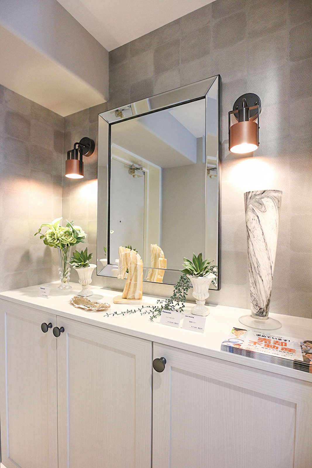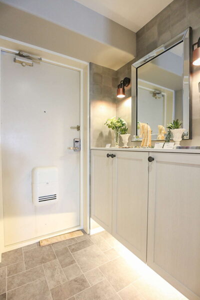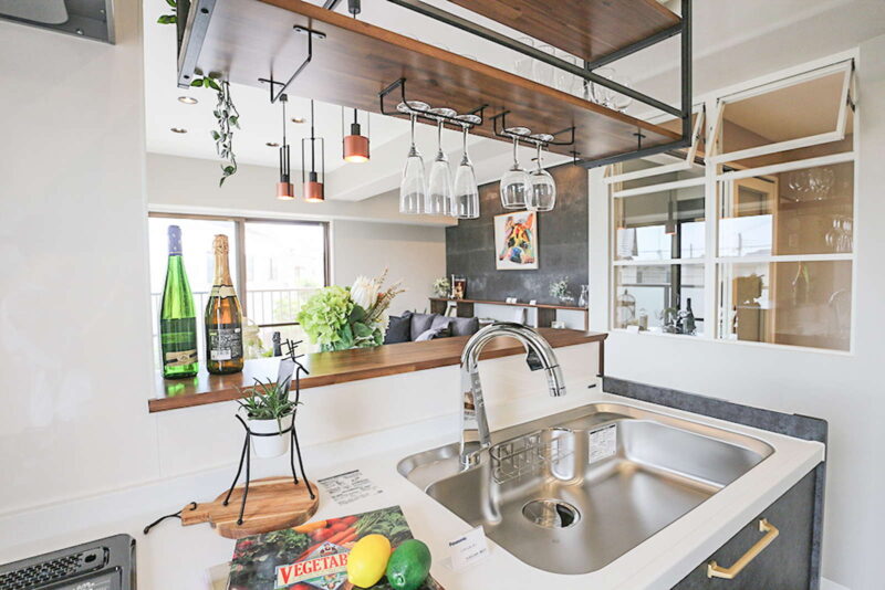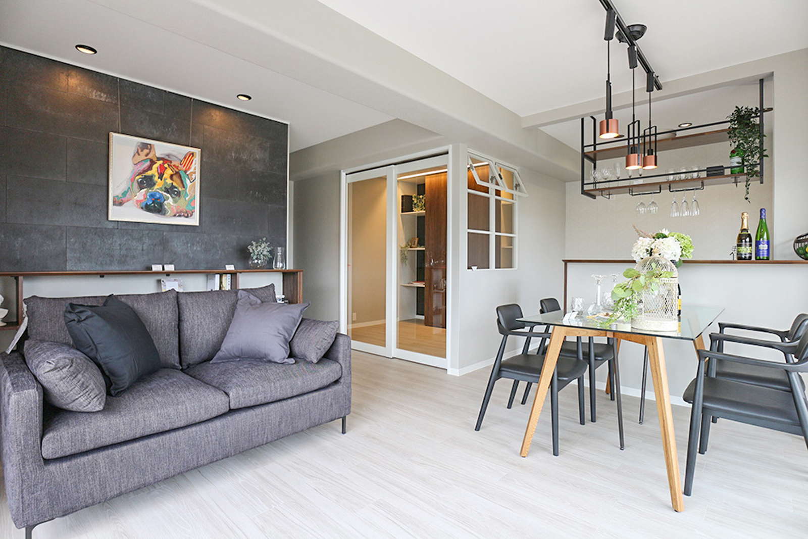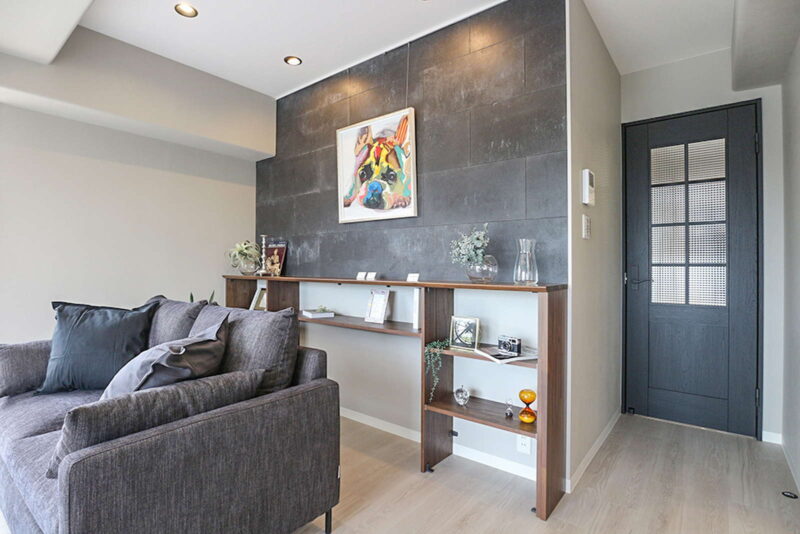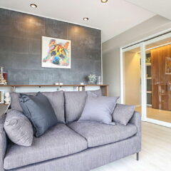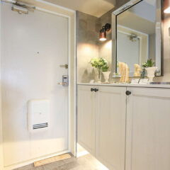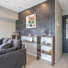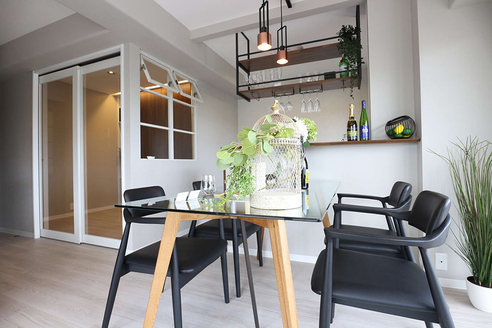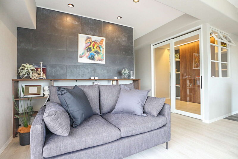 全室床・壁クロス張り替え、建具新調、和室畳張り替え、ユニットバス新調、洗浄機能付きトイレ新調 洗面化粧台新調、ニッチ新設、WIC新設、室内窓設置、システムキッチン新調、Solid張付け、家具設置